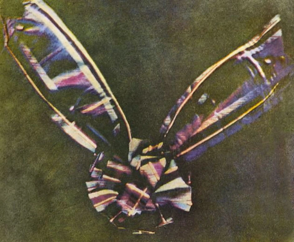 Prvu fotografiju u boji napravio je matematički fizičar Džejms Kler Maksvel 1861. godine. Fotografisao je zapravo Tomas Saton, ali je Maksvel fotografiju pripisao sebi zbog toga što je on naučno zaslužan za to što je nastala. Na fotografiji je trobojna mašna.