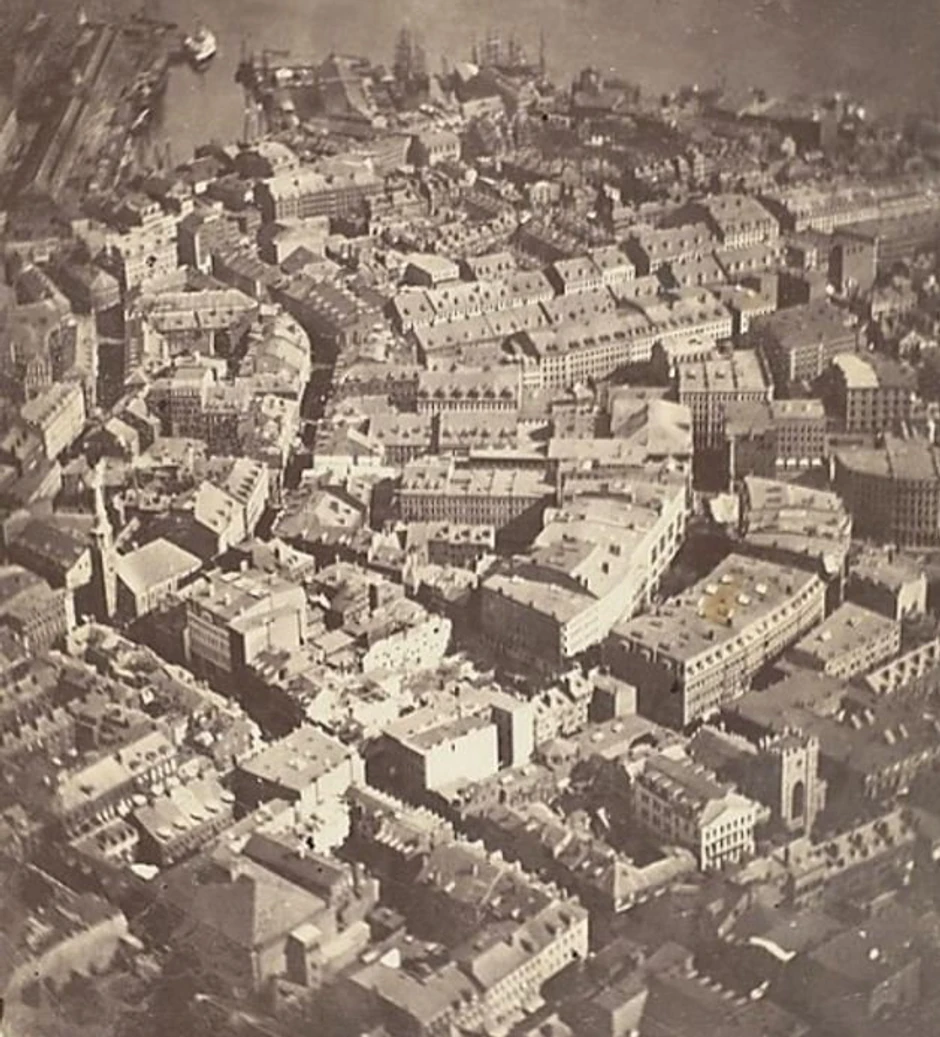 Prva fotografija iz vazduha napravljena je iz balona 1860. godine. Napravljena je iznad Bostona na visini od 600 metara. Fotograf koji ju je napravio, Džejms Valas Blek, nazvao ju je "Boston, onakav kakvim bi ga videli orao ili divlja guska".