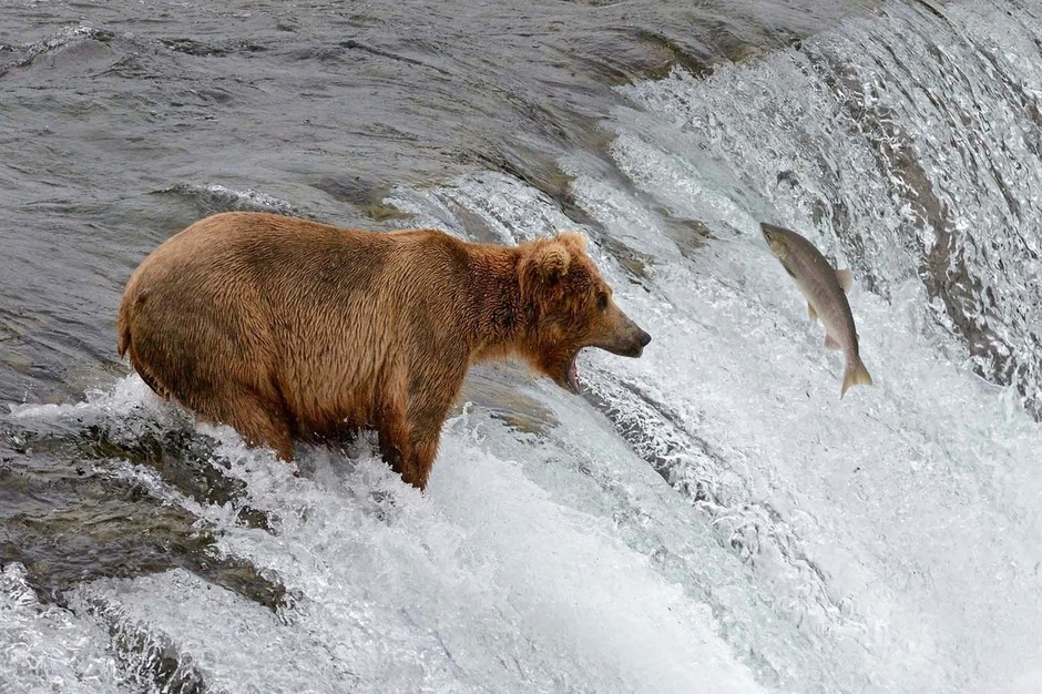U nacionalnom parku Katmai u Rusiji grizliji svakodnevno tragaju za ručkom. Ponekad im riba dolazi sama, a nekad ipak moraju malo da se pomuče.