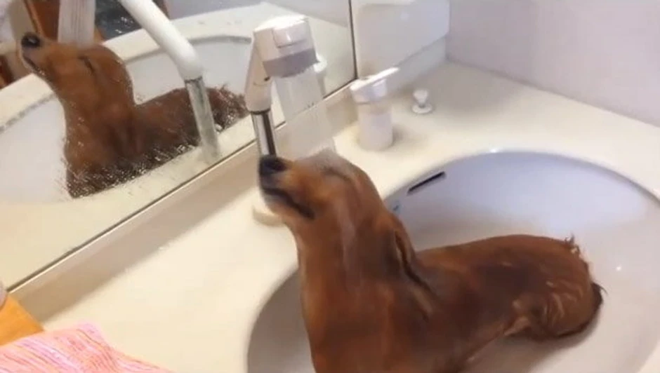 Dok većina pasa ne voli kupanje, ovaj jazavičar obožava da se tušira. Posebno zadovoljstvo mu predstavlja kupanje u lavabou.