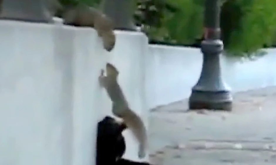 Kada je shvatio da mala veverica nikako ne može da se popne na zid, prolaznik je odlučio da uzme stvar u svoje ruke.