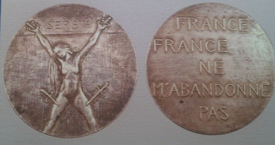 Na izložbi se nalazi i Štajnlenova litografija iz serije o zločinima nad srpskim ženama (rađena prema fotografijama Miloja Igrutinovića) koja je kasnije poslužila Ovidu Jenkesu za lik na medalji sa tekstom "Francusko, Francusko, ne napuštaj me".
