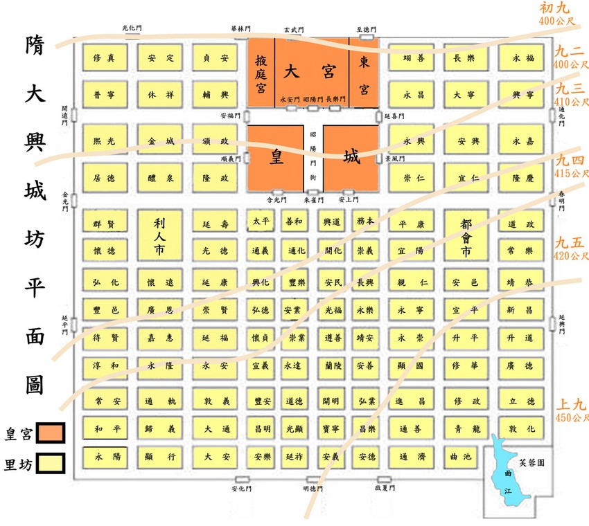Pesnik Bai Đuji pisao je da je grad imao “stotine, hiljade kuća - nalik na veliku šahovsku tablu... Poput ogromnog polja na kome su zasađeni redovi kupusa.” Grad je imao bulevare sa tri trake, pet puta šire od njujorške Pete avenije.
