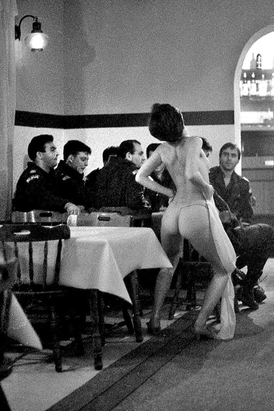 U Odžacima sam tog vremena otkrio jednu kafanu, u kojoj sam nalazio mir uz vinjačiće, od dana provedenih na frontu, od viđenih i snimljenih slika. A te slike se ne brišu lako iz glave. Jedne večeri u kafani - nadrealna scena. U trenutku sam samo pomislio - možda je od vinjaka, ali nije. Bilo je stvarno. Ukrajinka, striptizeta, počinje ples. U kafani glavni gosti vojnici i policajci, opšte oduševljenje. Slikao sam i slikao i tako je nastala jedna od mojih najboljih fotografija. I danas, kad je gledam, izgleda kao da je neko u kafanu uneo lutku.