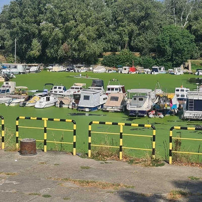2 kom. Sava u Čukaričkom rukavcu prekrivena ZELENIM TEPIHOM: Čamci kao da stoje na fudbalskom terenu, a iza svega stoji ova pojava (FOTO)