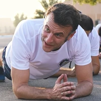 2 kom. (VIDEO) SKLEKOVI, ZGIBOVI, TRBUŠNJACI Makron trenirao sa jutjuberom: Francuski predsednik u beloj majici i tamnoplavom šortsu, večerao sa vojnicima