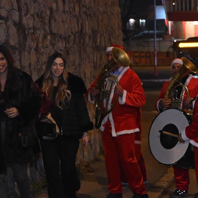 9 kom. TRUBAČI U KOSTIMIMA DEDA MRAZA STIGLI NA SLAVU CECE RAŽNATOVIĆ Ispred vile na Dedinju prava žurka: Uz muziku dočekuju goste (Video)