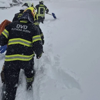 17 kom. (FOTO) DRAMA KOD PLITVICA! Sneg zarobio porodicu sa malim detetom u kombiju, spasioci pešačili DVA KILOMETRA kroz mećavu da ih izvuku na sigurno!