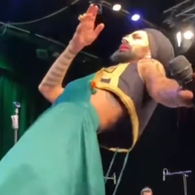5 kom. (VIDEO) Pevač (41) u haljini sa dekolteom do pupka, obuo štikle, pa uvijao kukovima na sceni: Izveo trbušni ples, telo celo u tetovažama