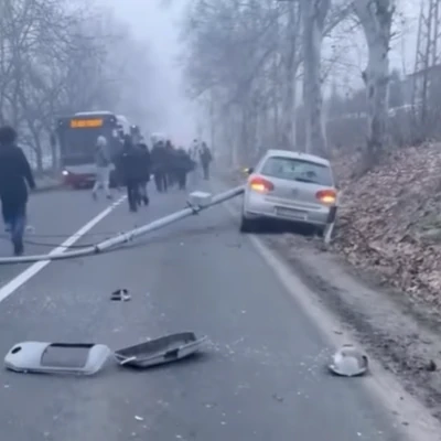 9 kom. NAROD IZLAZI IZ AUTOBUSA I IDE PEŠKE Jeziv udes kod Galenike u Beogradu, "polo" oborio lampion na put i zaustavio saobraćaj (VIDEO)