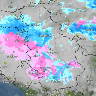 10 kom. (RADARSKI SNIMCI) DŽINOVSKA SNEŽNA MASA NAD SRBIJOM Pogledajte kako će se kretati nevreme iz sata u sat: Evo gde već sada pljušte kiša i sneg