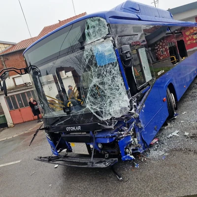 9 kom. (FOTO) JEZIVI SUDAR AUTOBUSA U VELIKOM MOKROM LUGU! Zakucali se jedan u drugi na okretnici, jedna osoba odmah prevezena u Urgentni