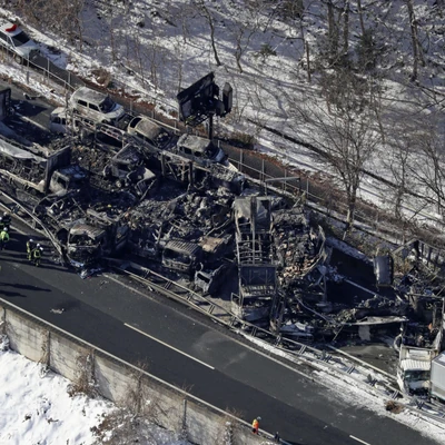 1 kom. (FOTO, VIDEO) 50 VOZILA UČESTVOVALO U SUDARU! Plamen ih progutao, neka su ugljenisana do neprepoznatljivosti: 7 sati gašen požar, prizori kao iz pakla