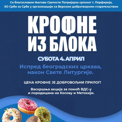 0 kom. "Krofne iz bloka" na Vrbicu u preko 60 hramova - pridružite se humanitarnoj akciji i obradujte one kojima je najpotrebnije