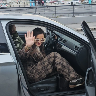 3 kom. Katarina Grujić U CRNOM KOŽNOM MANTILU na aerodromu, a lice KRIJE NAOČARIMA! Pevačica odbrusila na pitanje o reperu: "Ne komentarišem ljude bez zanimanja" (Video)