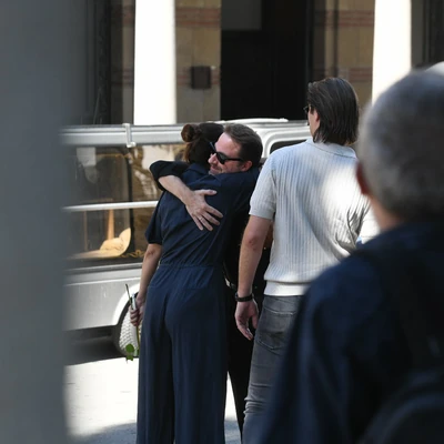 1 kom. SAHRANA OCA GORDANA KIČIĆA Glumac skrhan bolom prima saučešće: Bane Trifunović i Dubravka Mijatović ga čvrsto grle (FOTO)
