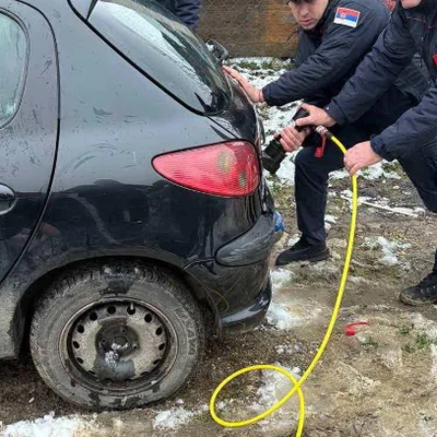 1 kom. DRAMA U KLADOVU Porodica ostala zaglavljena u SNEGU, vatrogasci-spasioci pritrčali u POMOĆ: U terencu koji je skliznuo s puta bilo i DETE (FOTO)