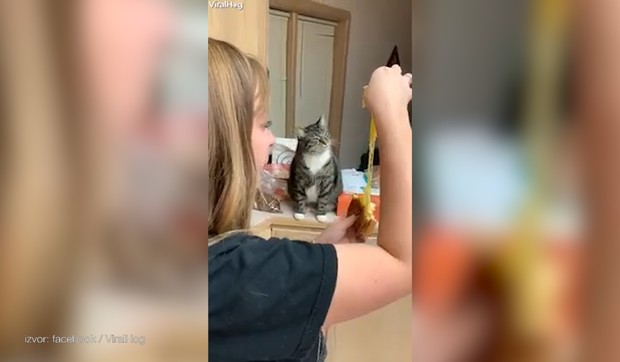 Video 0 kom. Jela je sendvič i RAZVLAČILA SIR, a MAČKA nije mogla da sakrije koliko joj VADI ZAZUBICE