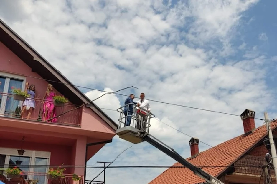 Mladoženja Aleksandar Marinković koji je došao u Ulicu Mladena Žujovića po mladu Valentinu popeo se pomoću dizalice sa korpom do jabuke, skinuo je i pojeo, a od gostiju je nagrađen aplauzom i ovacijama.