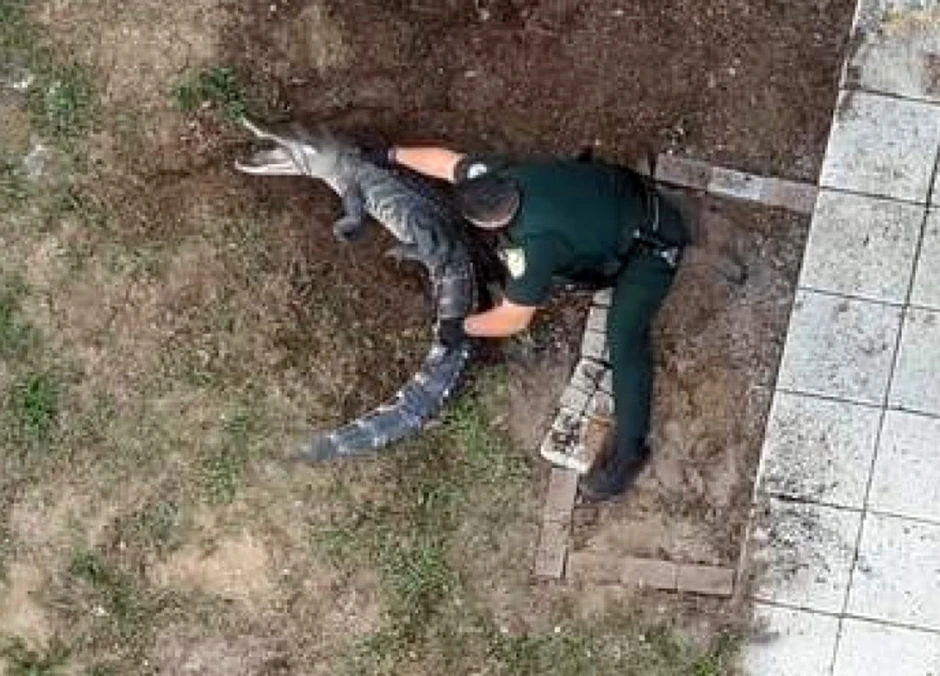 Jedan policajac je hrabro skočio na aligatora da ga obuzda