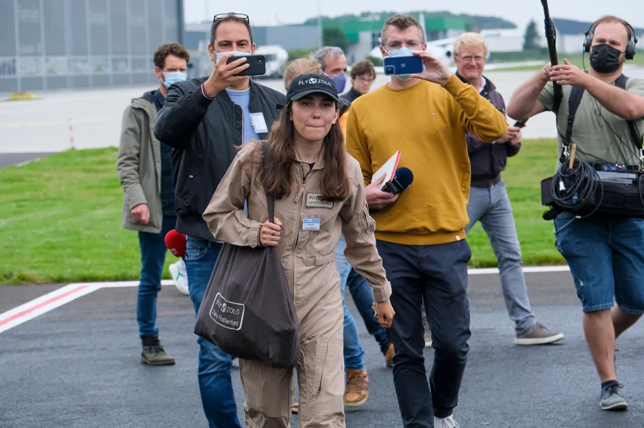Ruterfordova je sa aerodroma Kortrijk-Vevelgem na zapadu Belgije otputovala svojom ultralakom "Ajkulom", najbržim mikrolakim avionom na svetu, piše Rojters.