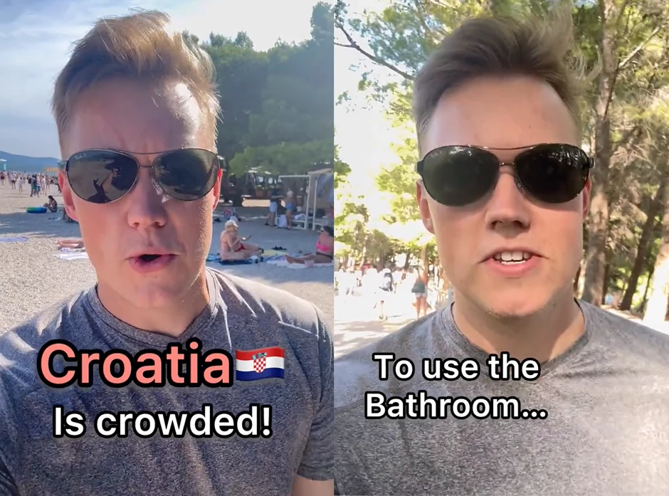 "Morao sam da platim 1.40 evra samo da odem na WC. Volite li vi šljunkovite ili peščane plaže? Ja sam više za peščane, a moj prijatelj za šljunkovite. Hrvatska je krcata, ali ima puno kul ljudi", ispričao je u videu na kojem je pokazao plaže, prirodu, hranu i kipove.