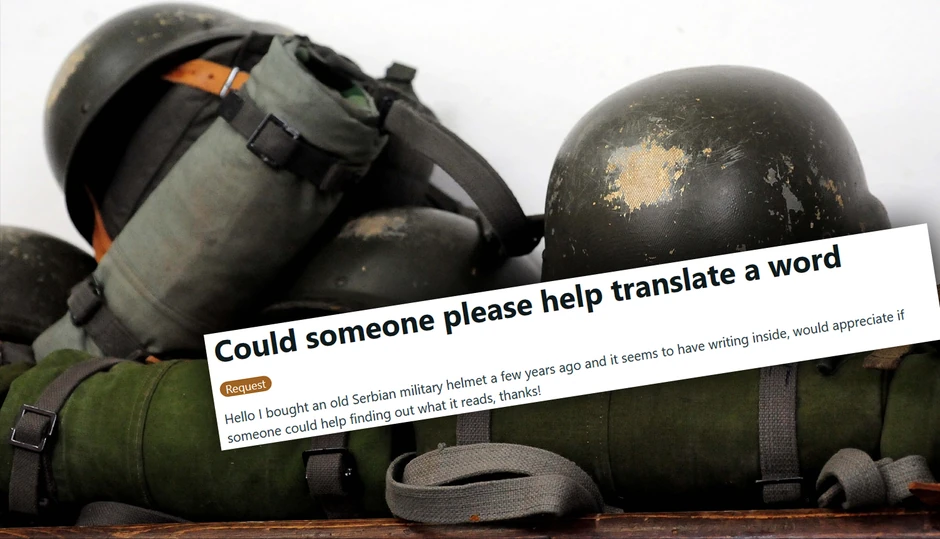 "Zdravo, može li neko da mi pomogne i da mi prevede reč. Kupio sam stari srpski vojni šlem pre nekoliko godina i sada shvatio da ima natpis unutra, bio bih zahvalan ako bi neko mogao da mi pomogne da saznam šta piše, hvala!", napisao je Džordan.