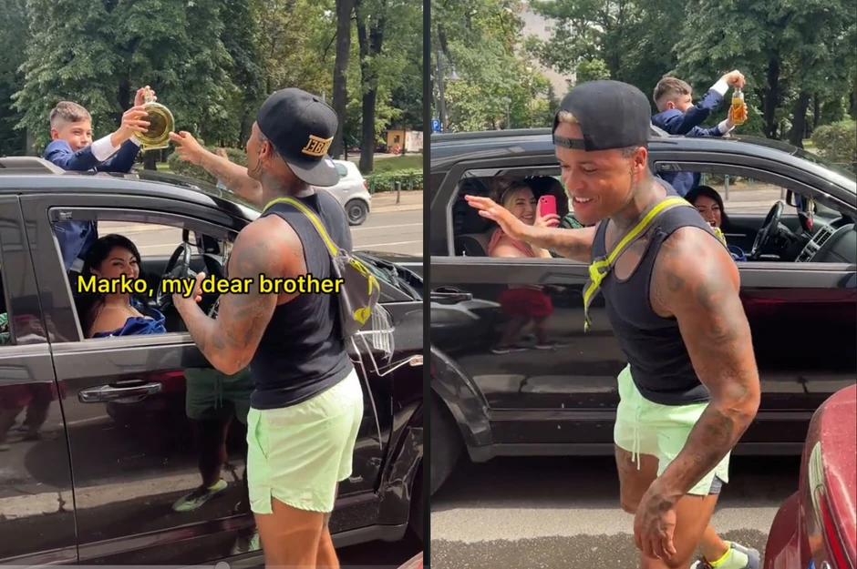 Amerikanac je u Beogradu sreo svadbenu povorku vozila i toliko se oduševio da je od sreće prilazio ljudima, čestitao im na veselju i pio čuvenu srpsku rakiju.