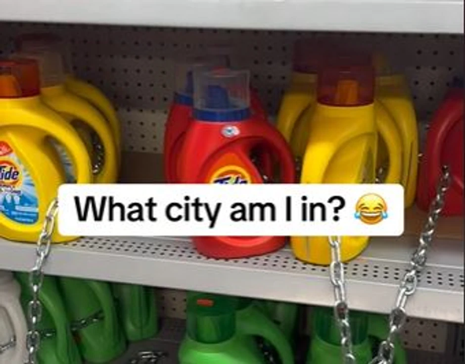 Naime, jedna američka prodavnica mešovite robe odlučila je lancima i katancima opasati boce deterdženata na policama kako bi sprečila ljude da ih ukradu.