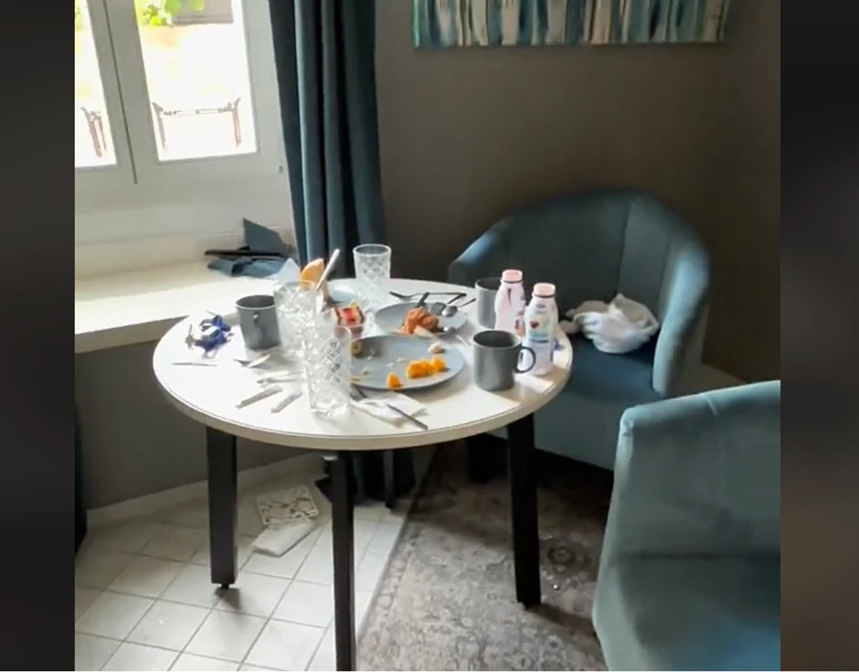Kako se vidi na snimku, gosti apartmana ne samo da su ostavili nered, nego su zaista đubre bacali na sve strane, polomljenu činiju ubacili u fioku kako se ne bi videla, na stolu ostavili pravi nered a ni na drugim mestima se nisu pobrinuli da ga očiste.