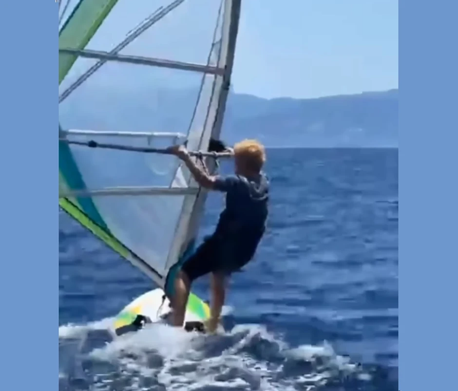 Pet godina nakon što je na dasci za jedrenje prešla rutu između Skale i Kilinija, što joj je obezbedilo ulazak u Ginisovu knjigu rekorda, ova vitalna baka je danas ponovo jedrila na dasci od omiljene Kefalonije do Zakintosa i prešla razdaljinu od 11 nautičkih milja.