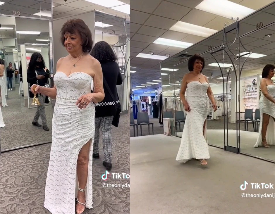 Video koji je na TikTok-u objavila unuka, prikazuje baku u glamuroznoj haljini kako se šeta u prodavnici venčanica kao prava manekenka nakon što je isprobala jednu od tri haljine.