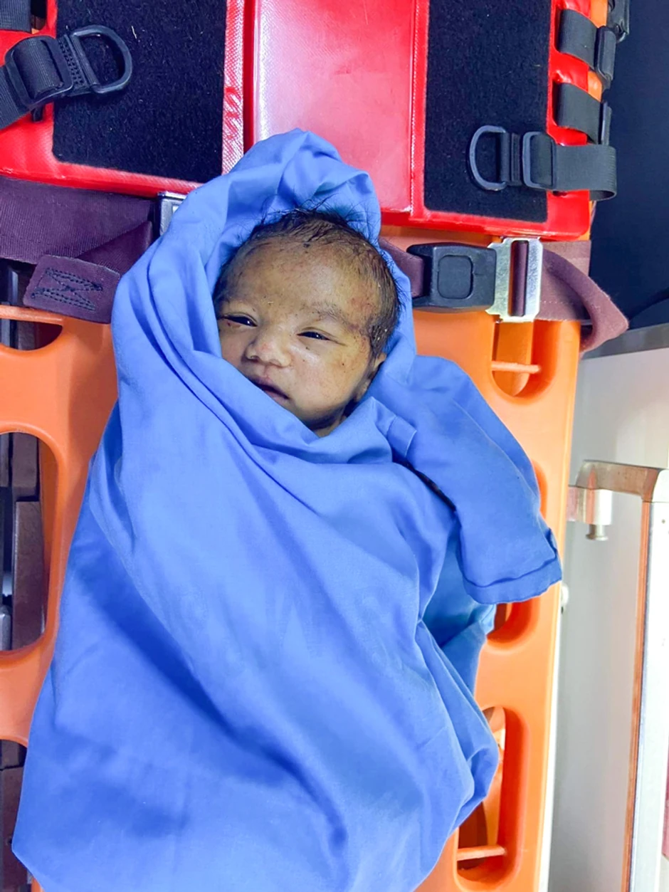 Meštani koji su je pronašli, podigli su bebu i ona je počela da plače dok su joj se oči polako otvarale. Ubrzo su došli policija i hitna pomoć. Meštani su se brinuli o novorođenoj bebi jer nisu želeli da rizikuju da je nose više od sat vremena u toku noći nazad u svoje selo.