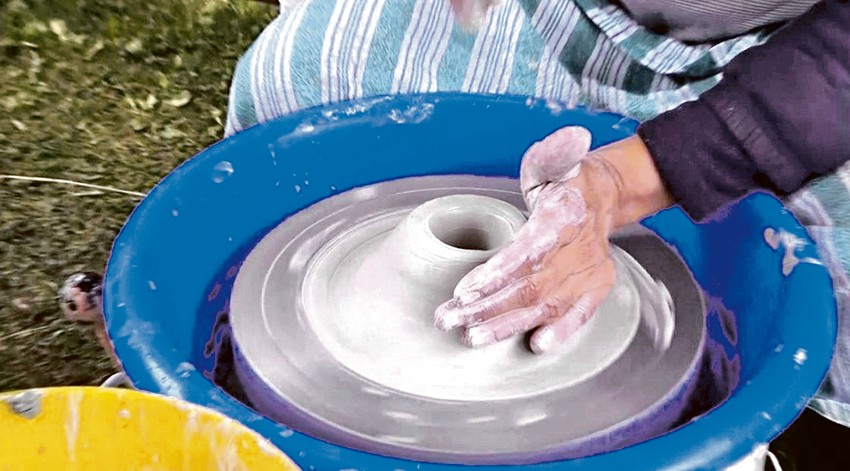 - Glina mora prvo rukama dobro da se umesi. Onda je važno da se postavi na ovu mašinu i dobro centrira. Zatim sa dva prsta otvaramo posudu i dalje je prstima lagano oblikujemo. Ruke moramo da kvasimo, ali i u tome ne treba preterivati - objašnjava Biljana.