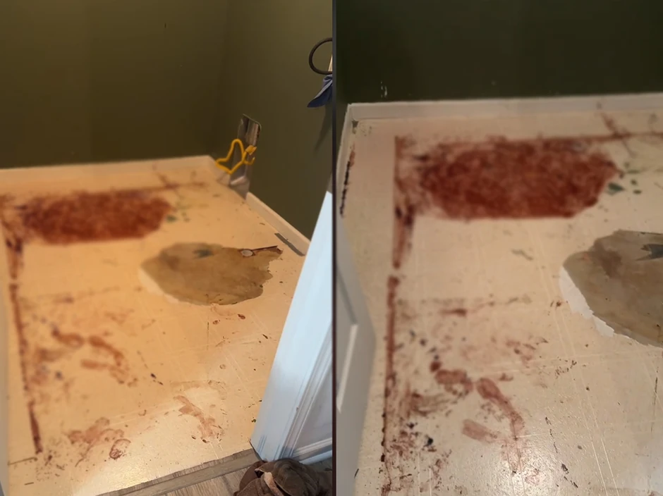 Naime, žena po imenu Odri objavila je na svom Tik Tok nalogu da se nedavno preselila iz Arkanzasa u Mičigen sa svojim suprugom, u novi dom koji je izgledao savršeno. Ipak, kada su usled curenja vode u vešernici sklonili pod, pronašli su crvene otiske stopala i ono što je ličilo na veliku mrlju krvi, što ih je šokiralo.