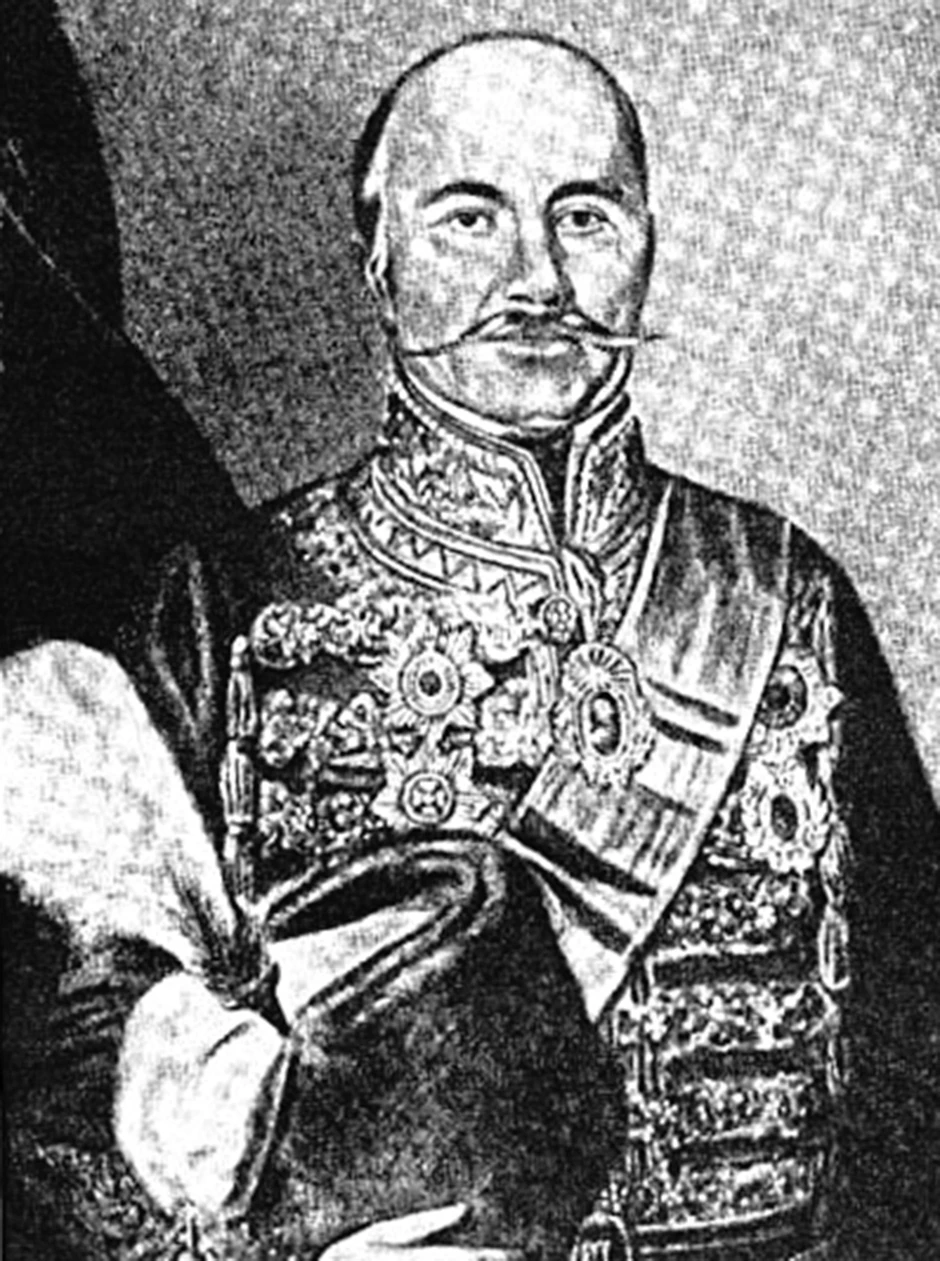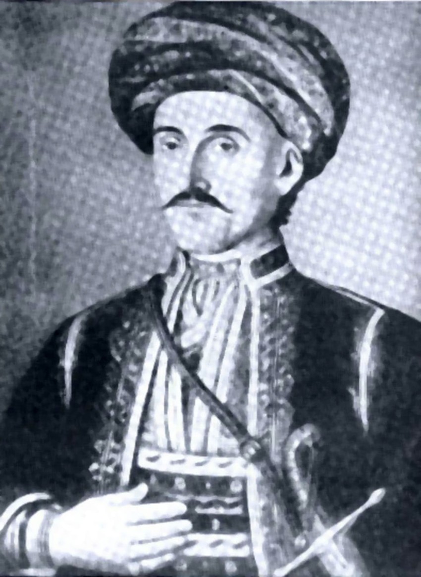 U gornjem uglu od velike sobe na šiltetu seđaše knez Miloš pušeći na veliki čibuk. Desno do njega sedi Melentije Pavlović, znameniti vraćevački arhimandrit, a levo – iguman kalenićki Samuilo.