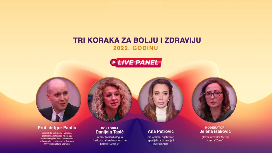 Blic panel „Tri koraka za bolju i zdraviju 2022. godinu“ možete da gledate direktno na portalu Blic.rs kao i na Blicovom YouTube kanalu danas od 13h. Program će moderisati Jelena Isaković, glavna urednica Medija centra „Žena“.