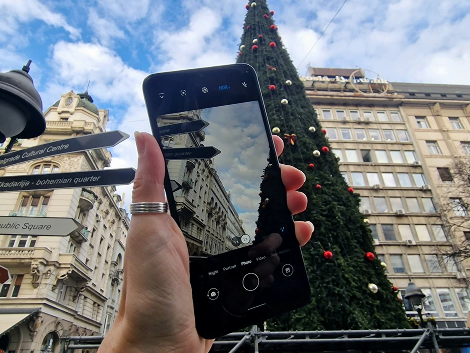 Glavna kamera je pouzdana, precizna, brza i pravi detaljne fotografije na kojima se boje reprodukuju u prirodnim nijansama, nezavisno od toga u kakvim uslovima se slikaju, bilo da ste na porodičnom ručku ili želite da uveče uslikate grad okićen prazničnim ukrasima.