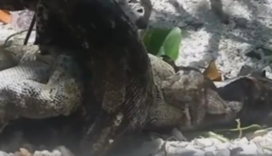Na zastrašujućem snimku veličanstvena, ali i jeziva zmija boa bukvalno guta iguanu.