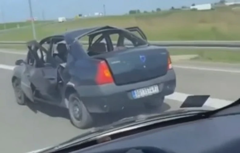 Snimak koji se pojavio na društvenim mrežama na kome se vidi potpuno havarisano vozilo kako se velikom brzinom kreće autoputem Beograd - Novi Sad izazvao je salve smeha i mnoštvo komentara jer je prizor zaista nesvakidašnji ali u isto vreme i izuzetno opasan po samog vozača i druge učesnike u saobraćaju.