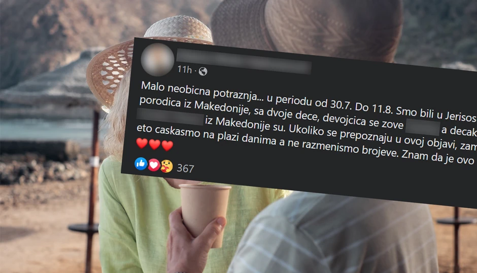 "Malo neobična potražnja. U periodu od 30.7. do 11.8. smo bili u Jerisosu, u istom periodu je bila porodica iz Makedonije, sa dvoje dece, devojčica se zove Spasija a dečak Vigor. Mama radi u vinariji Tikveš, iz Makedonije su. Ukoliko se prepoznaju u ovoj objavi, zamolila bih da nam se jave, eto ćaskasmo na plazi danima a ne razmenismo brojeve. Znam da je ovo svemoguća grupa", napisala je Bojana u svojoj objavi.