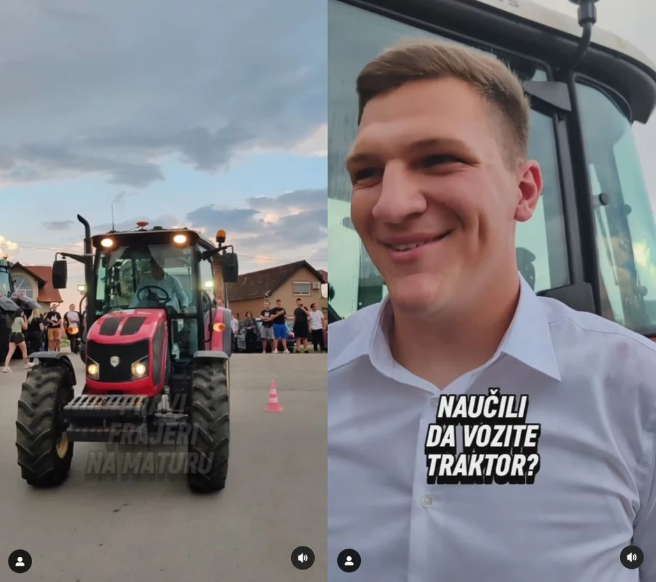 "Za ovu priliku smo ih posebno spremili. Mercedesa ima svuda na putu, a traktori se sve ređe viđaju", dodaje jedan od maturanata.