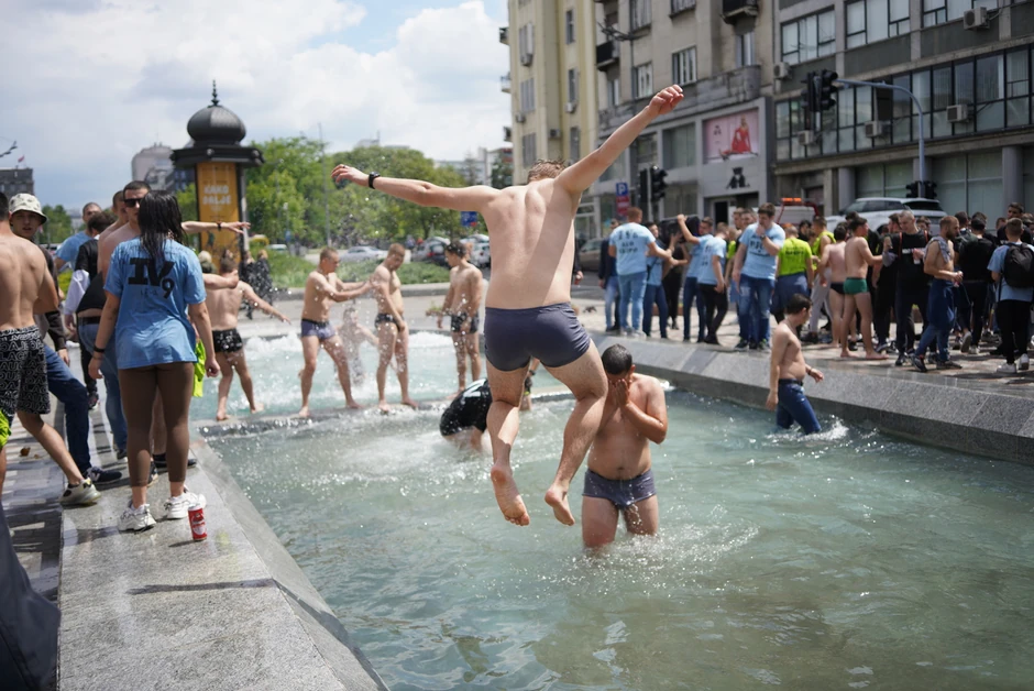 Omladina se tradicionalno poskidala i bacila u fontanu na Trgu Nikole Pašića, a ovog puta poneli su i baklje što je izazvalo najnegativnije reakcije građana.