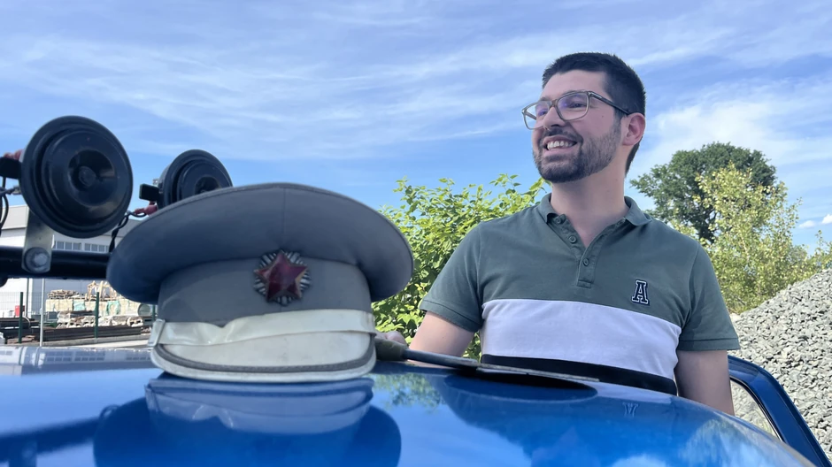 Ilija Ječmenica iz Čačka restaurirao stari plavi 'stojadin' s autentičnim detaljima milicijskog vozila.