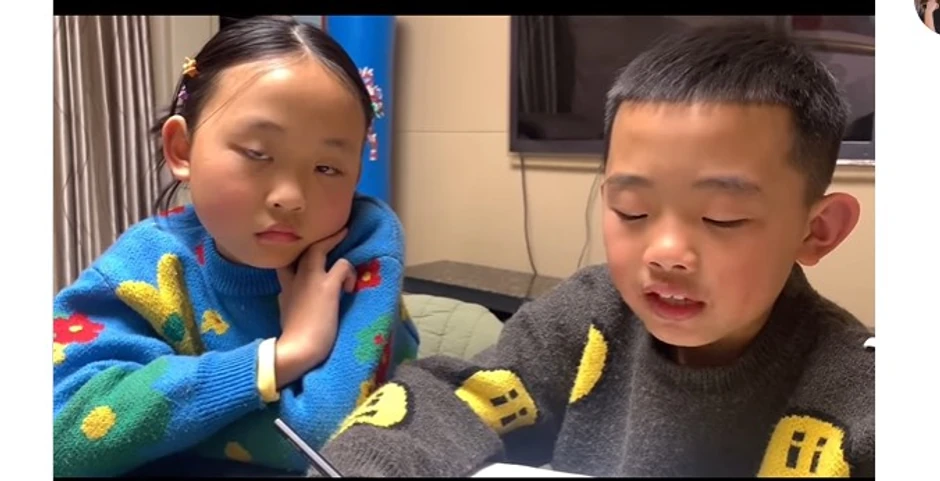 Teško je isprva i shvatiti šta se dešava, jer se na snimku vide devojčica i dečak koji sričući čita nešto. Isprva, svi su pomislili da priča na kineskom, jer zaista, tako sve i zvuči, ali tek kada se umešala njegova prijateljica, ljudi su shvatili o čemu se radi.