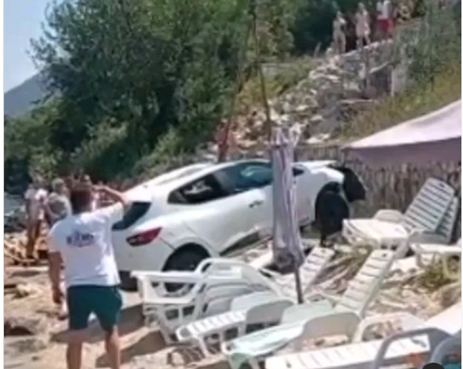 "Vozač automobila nije povukao ručnu kočnicu i ostavio je vozilo u leru. Bez ikakve kontrole, automobil se potom survao niz padinu, prešao plažu punu kupača i završio u moru. Samo pukom srećom niko nije povređen od kupača. Automobil je izvučen kranom", stoji u opisu videa.