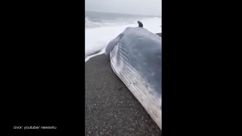 Prema rečima očevidaca, morsku grdosiju su na obalu bukvalno bacili ogromni talasi. Kit je dugačak 19 metara, što je za ovu vrstu veoma retko.