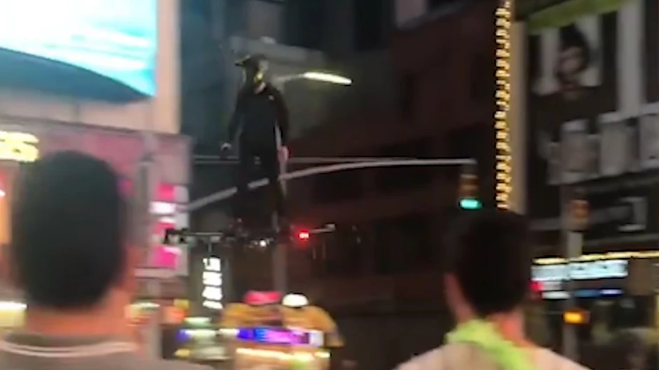Novi video snimak koji postaje viralan na društvenim mrežama prikazuje smelog avanturistu sa šlemom kako proleće kroz Tajms Skver u Njujorku - na nečemu što se čini kao dron sa osam rotora, krstareći solidnih tri metra iznad zemlje.