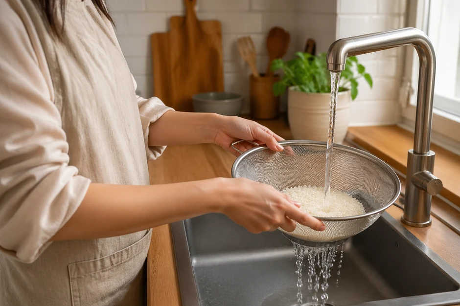 Pranje pirinča uklanja nečistoće i površinski skrob, poboljšavajući teksturu i sprečavajući lepljenje zrna