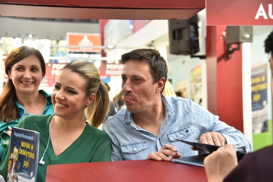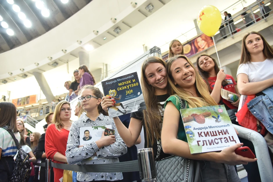 Horda fanova, mahom dece zauzela je gotovo sav prazan prostor, nestrpljivo čekajući da se pojavi "zvezda dana" Andrija Milošević. Mnogo njih je došlo organizovano, doveli su ih nastavnici, bilo je i starijih školaraca koji su stali u red sa mlađima, a ponajviše je bilo baka koje su došle po potpis za unuke.